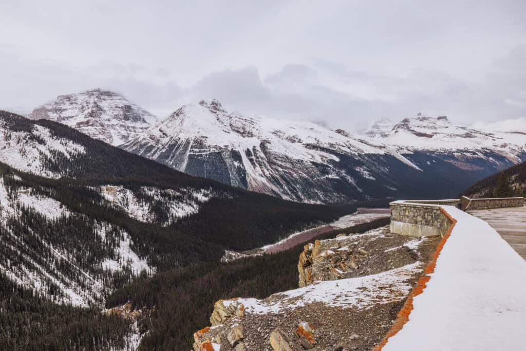 It offers one of the best elevated viewpoints on the Icefields Parkway.