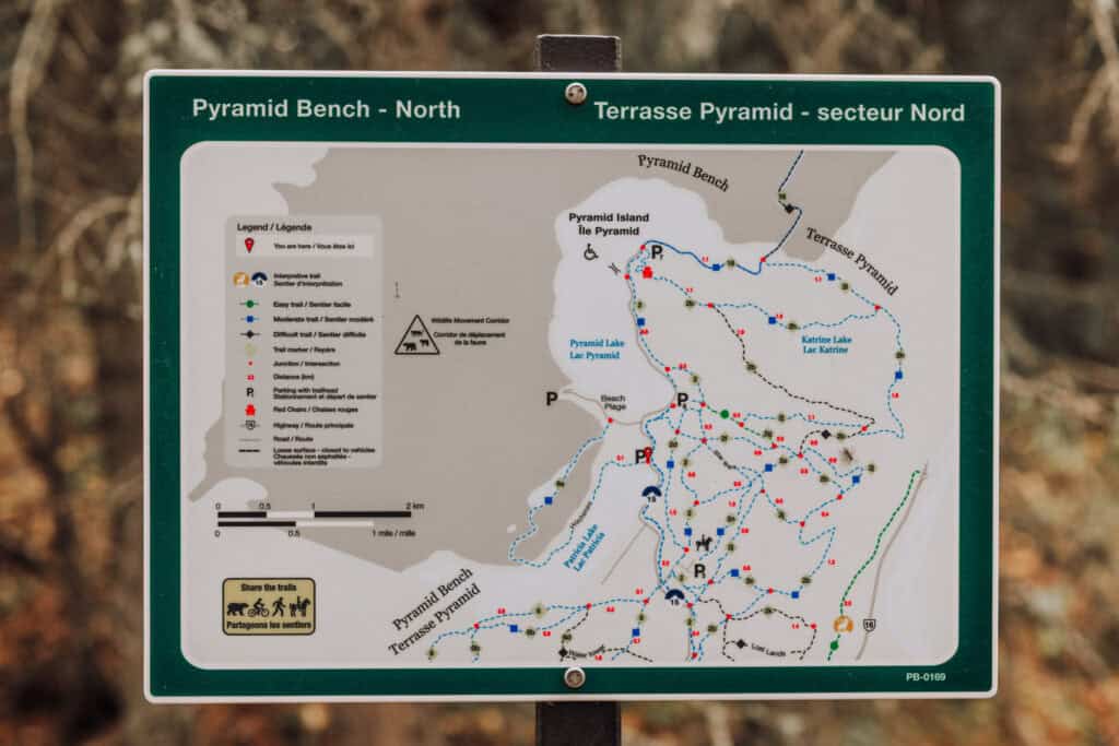 The entire trail system between Jasper and Pyramid Lake is called Pyramid Bench. Here are a few options: