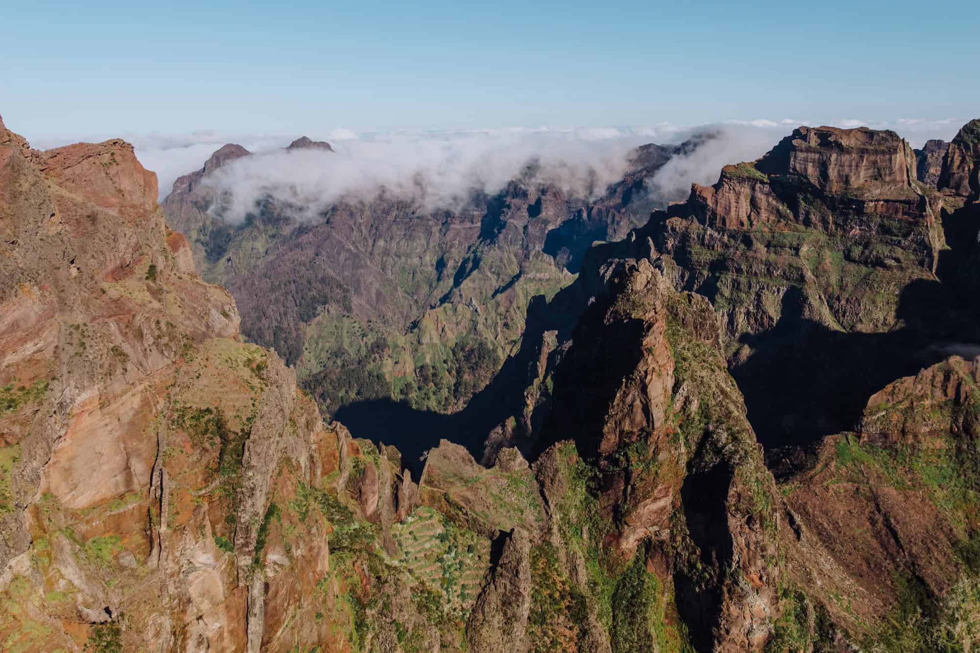 You’ll see Madeira’s two tallest peaks nearby: Pico Ruivo and Pico das Torres. Each rises more than 6,000 feet above sea level. Pico do Areeiro is just under 6,000 feet.