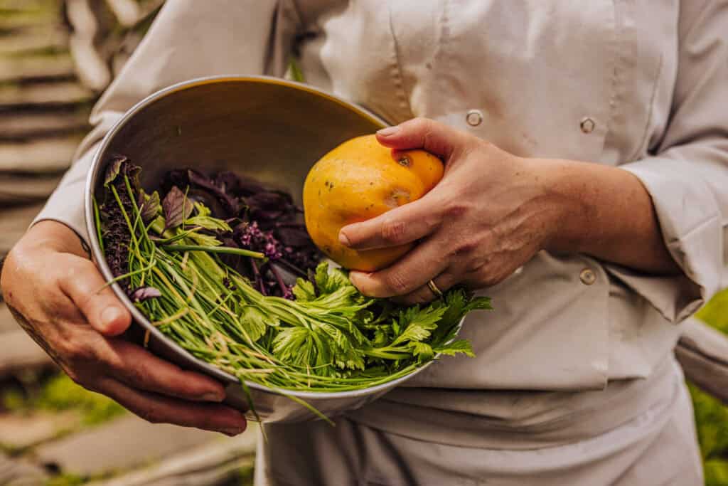 Walking through the garden, you’re likely to spot one of the chefs or gardeners picking herbs and vegetables to use at the resort’s restaurants that day.